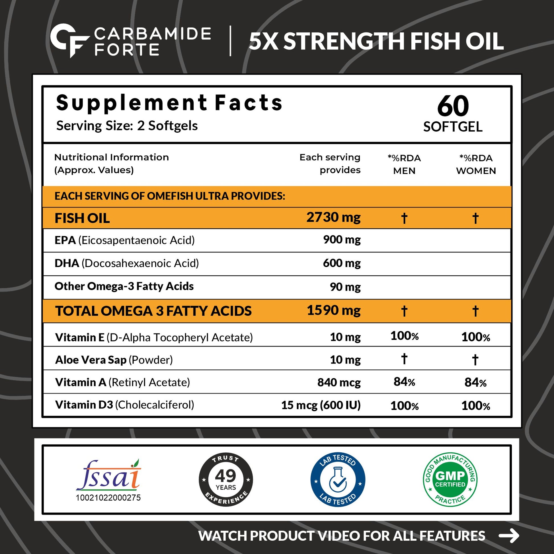 - ✅ 𝐇𝐈𝐆𝐇-𝐏𝐎𝐓𝐄𝐍𝐂𝐘 𝐅𝐈𝐒𝐇 𝐎𝐈𝐋 𝐎𝐌𝐄𝐆𝐀 𝟑 𝐈𝐍 𝐉𝐔𝐒𝐓 𝟐 𝐂𝐀𝐏𝐒𝐔𝐋𝐄𝐒: Tired of swallowing multiple fishoil pills? OMEFISH ULTRA delivers a massive 2730 mg fish oil with 1590 mg Omega-3s (900mg EPA + 600mg DHA) in just 2 easy-to-swallow omega 3 capsules