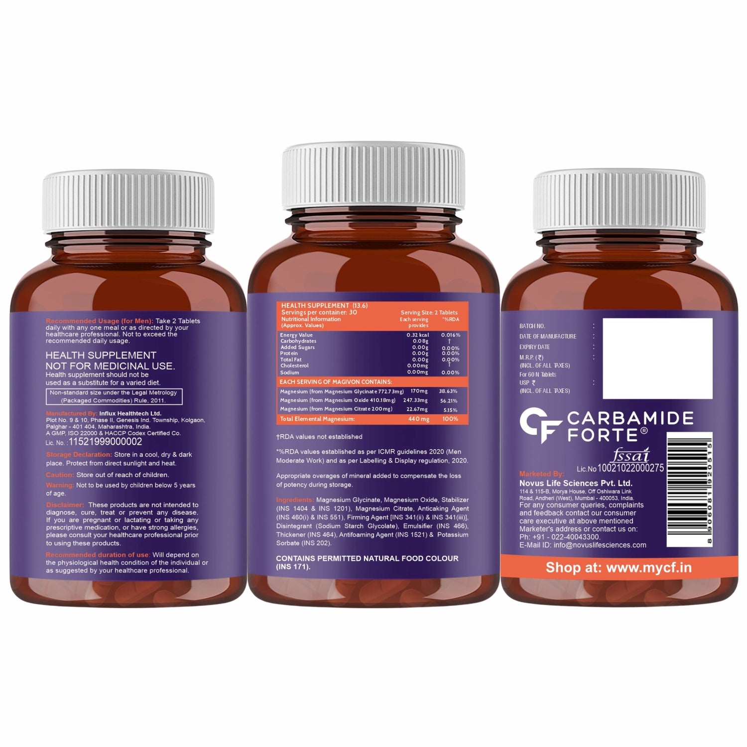 Carbamide Forte Chelated Magnesium Glycinate Citrate Oxide Supplement | Magnesium Supplement Supports Bones Muscles & Nerves 1382.91mg Per Serving - 60 Veg Tablets.