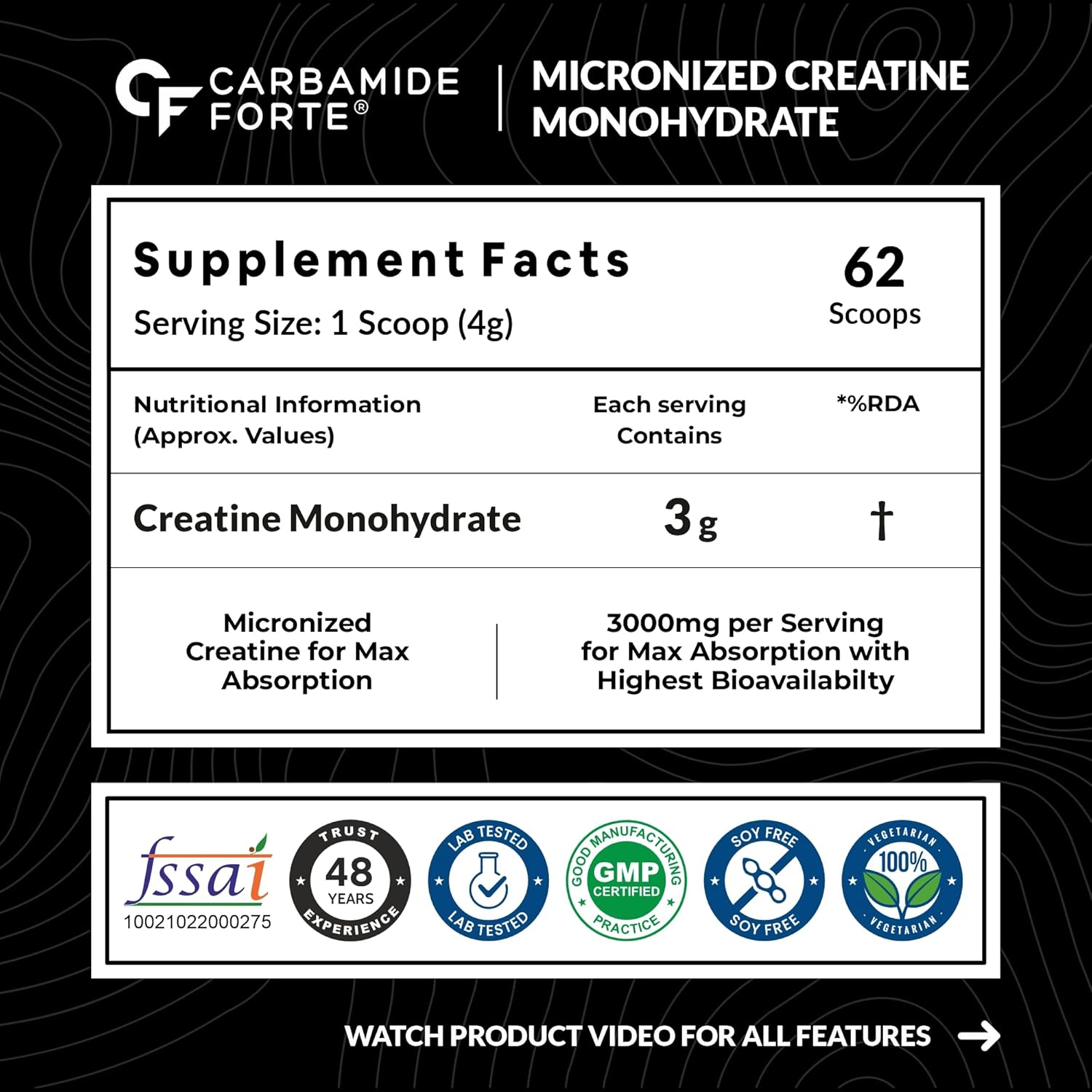 • ✅ 𝐌𝐈𝐂𝐑𝐎𝐍𝐈𝐙𝐄𝐃 𝐂𝐑𝐄𝐀𝐓𝐈𝐍𝐄 𝐌𝐎𝐍𝐎𝐇𝐘𝐃𝐑𝐀𝐓𝐄 𝐏𝐎𝐖𝐃𝐄𝐑 𝐅𝐎𝐑 𝐇𝐈𝐆𝐇 𝐁𝐈𝐎𝐀𝐕𝐀𝐈𝐋𝐀𝐁𝐈𝐋𝐈𝐓𝐘 & 𝐏𝐎𝐓𝐄𝐍𝐂𝐘: Micronized Creatine Powder supplement, available in sizes like creatine monohydrate 250gm, creatine monohydrate 100gm, and creatine monohydrate 500gm, has 3000 mg per serving with the highest bioavailability compared to other creatine supplements. This makes it easy to absorb and reach the muscles faster, facilitating muscle mass and strength building, and may increase the body's ability to recover, restore, and protect.
