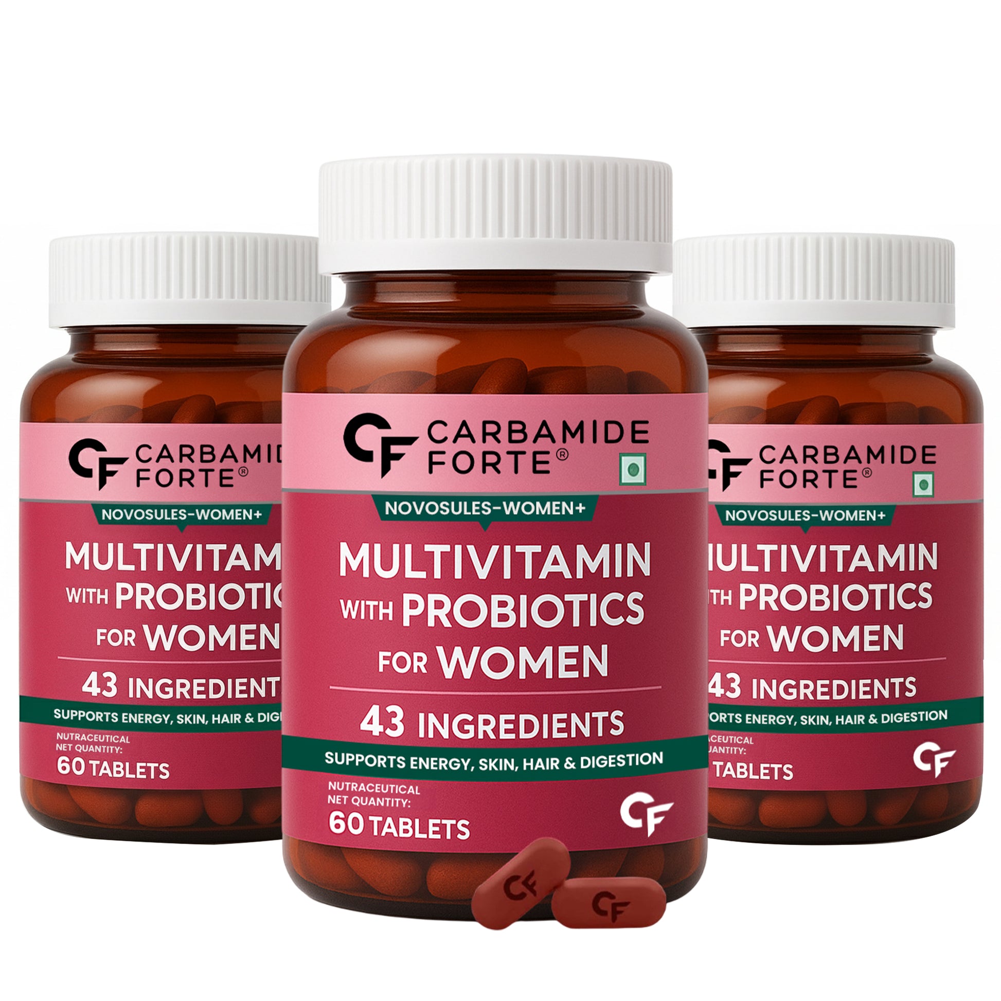 - ✅𝗗𝗜𝗚𝗘𝗦𝗧𝗜𝗩𝗘 𝗕𝗔𝗟𝗔𝗡𝗖𝗘 𝗪𝗜𝗧𝗛 𝗦𝗨𝗣𝗣𝗟𝗘𝗠𝗘𝗡𝗧𝗦 𝗙𝗢𝗥 𝗪𝗢𝗠𝗘𝗡 : These are suitable multivitamin for women 50 & 40 plus that contains a Pre & Probiotic Blend with 4 carefully chosen Probiotic Strains and 250 Million CFU of total Probiotics. Prebiotics are also added which help multiply Gut Probiotics.