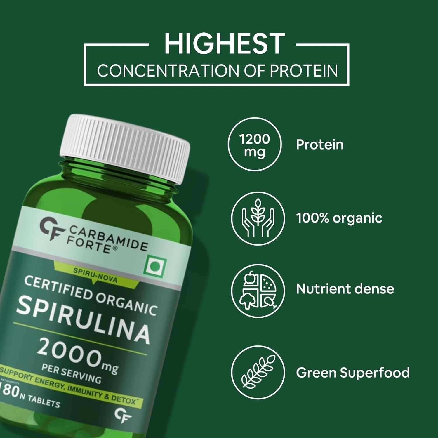 • βœ… π—›π—˜π—”π—Ÿπ—§π—›π—¬ π——π—œπ—šπ—˜π—¦π—§π—œπ—’π—‘ & π—¦π—žπ—œπ—‘ 𝗖𝗔π—₯π—˜ π—ͺπ—œπ—§π—› 𝗒π—₯π—šπ—”π—‘π—œπ—– π—¦π—£π—œπ—₯π—¨π—Ÿπ—œπ—‘π—” π—§π—”π—•π—Ÿπ—˜π—§π—¦ : Chlorophyll present in our healthy organic spirulina tablets may help in detoxification, clearer skin & manages dark circles which other organic spirulina capsules or powder don't. Spirulina supplement contains Amino Acids that support healthy digestion.