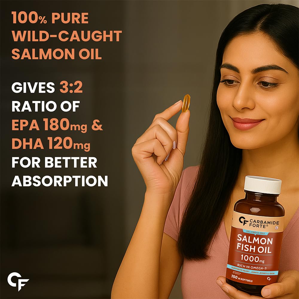 Carbamide Forte Salmon Fish Oil Omega 3 Capsule 1000 mg for Adults -Softgel Capsules 90 Count