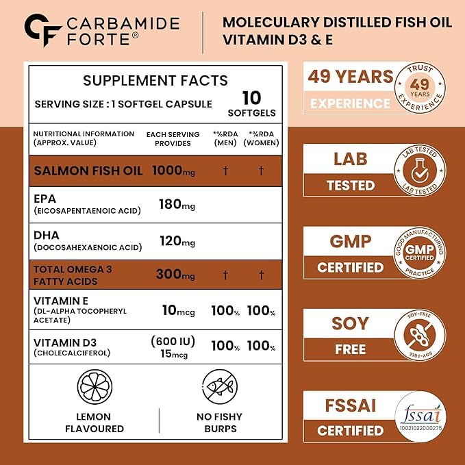 - ✅𝐏𝐇𝐀𝐑𝐌𝐀-𝐆𝐑𝐀𝐃𝐄 𝐐𝐔𝐀𝐋𝐈𝐓𝐘 𝐈𝐍𝐆𝐑𝐄𝐃𝐈𝐄𝐍𝐓𝐒 : Crafted with pharma-grade Salmon fish oil omega 3 capsules and Vitamin D & E, ensuring safety, purity, and accurate formulation in every fish oil supplement softgel.