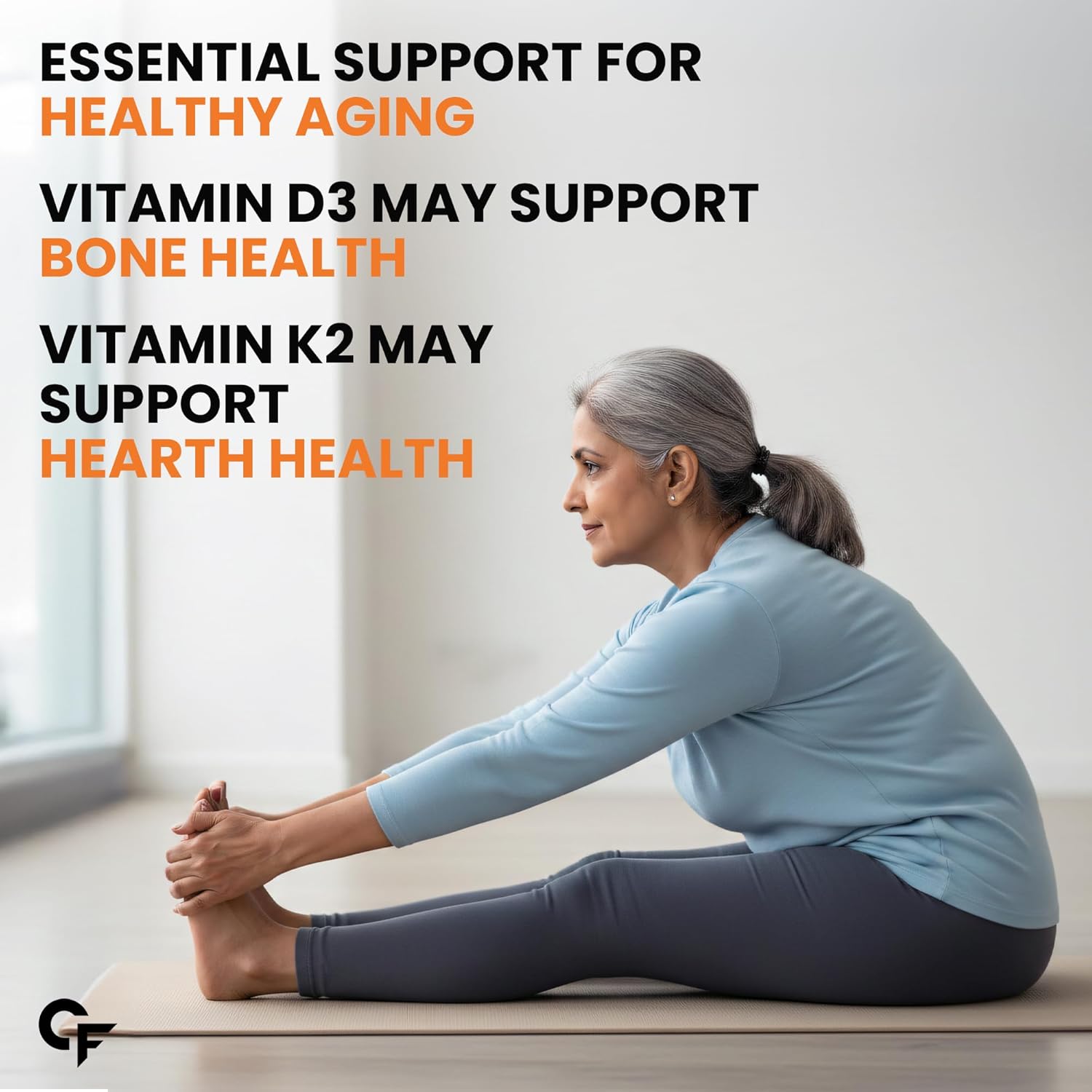 - ✅𝗦𝗨𝗣𝗣𝗢𝗥𝗧𝗦 𝗦𝗧𝗥𝗢𝗡𝗚 𝗕𝗢𝗡𝗘𝗦 & 𝗕𝗘𝗧𝗧𝗘𝗥 𝗖𝗔𝗟𝗖𝗜𝗨𝗠 𝗔𝗕𝗦𝗢𝗥𝗣𝗧𝗜𝗢𝗡: Vitamin k2 & d3 supplement may Support optimum bone density with our Vitamin D3 K2 supplements, facilitating better calcium absorption for strong, healthy bones.
